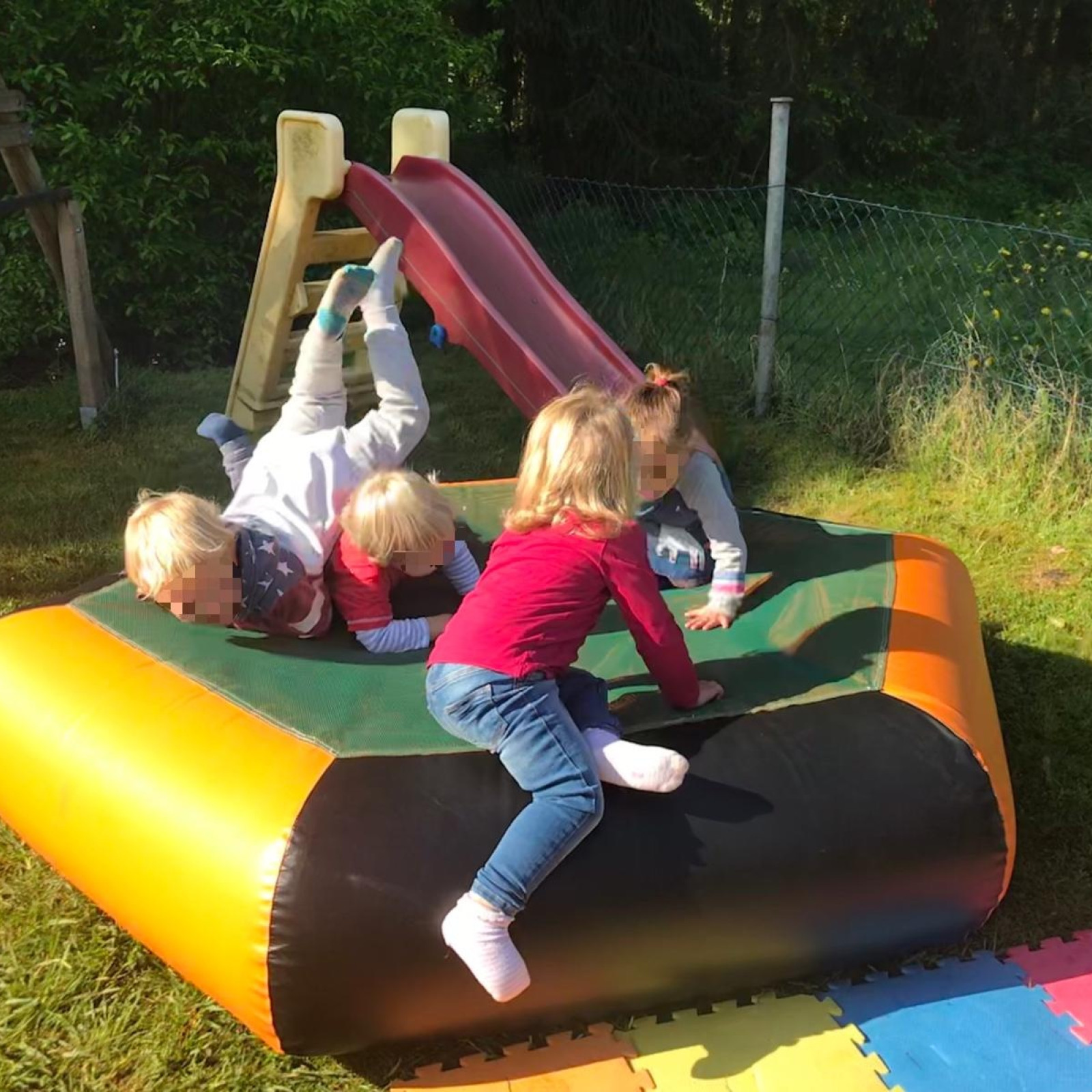 Ein großer Garten mit anschließendem Wald und mit einem kleinen See bieten viel Platz für Toben, Spiel, Spaß und Entdeckungen.